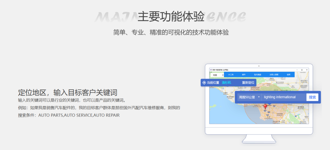只要定位城市和输入产品行业关键词就好,它可以针对某个区域开展地毯式精细搜索,能够快速且准确的找到目标客户的号码,这里面还有一个whatsapp验证功能,验证一下就可以知道客户号码有没有开通WhatsApp,真的很方便。