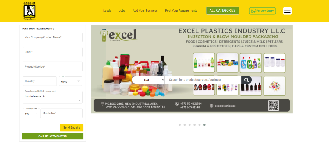 阿联酋的企业名录,用来开发中东市场还是很不错的,可以直接根据产品关键字搜索客户,然后直接可以通过WhatsApp联系对方。